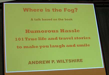 After another three quarters of an hour telling more of his experiences while travelling the world, he concluded by telling us the story which made the heading “Where is the Fog?”