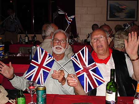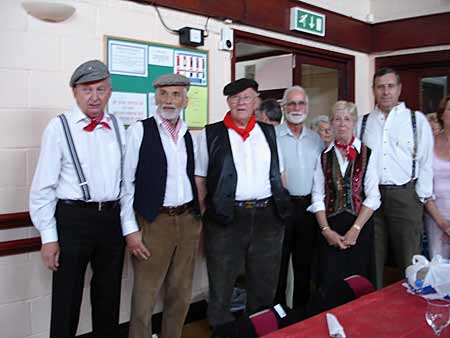 Organising CommitteeThe evening started with David Arnold welcoming everyone and saying that Waiters would soon be bringing around the "Bangers and Mash". This was a hot plate of Sausages, Baked Beans & mashed potatoes with onion gravy. This was washed down with bottles of drink brought from home.