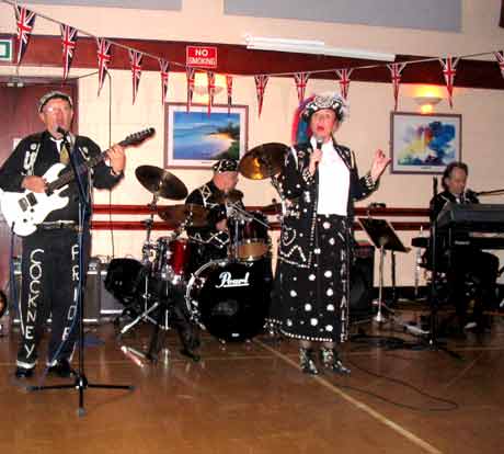 When this course had been cleared away, the Cockney Pride appeared on stage dressed as Pearly Kings & Queens but supporting musical instruments.