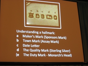 He hoped that many in the audience would go home and have a look at a treasured heirloom to note the hallmarking on it.